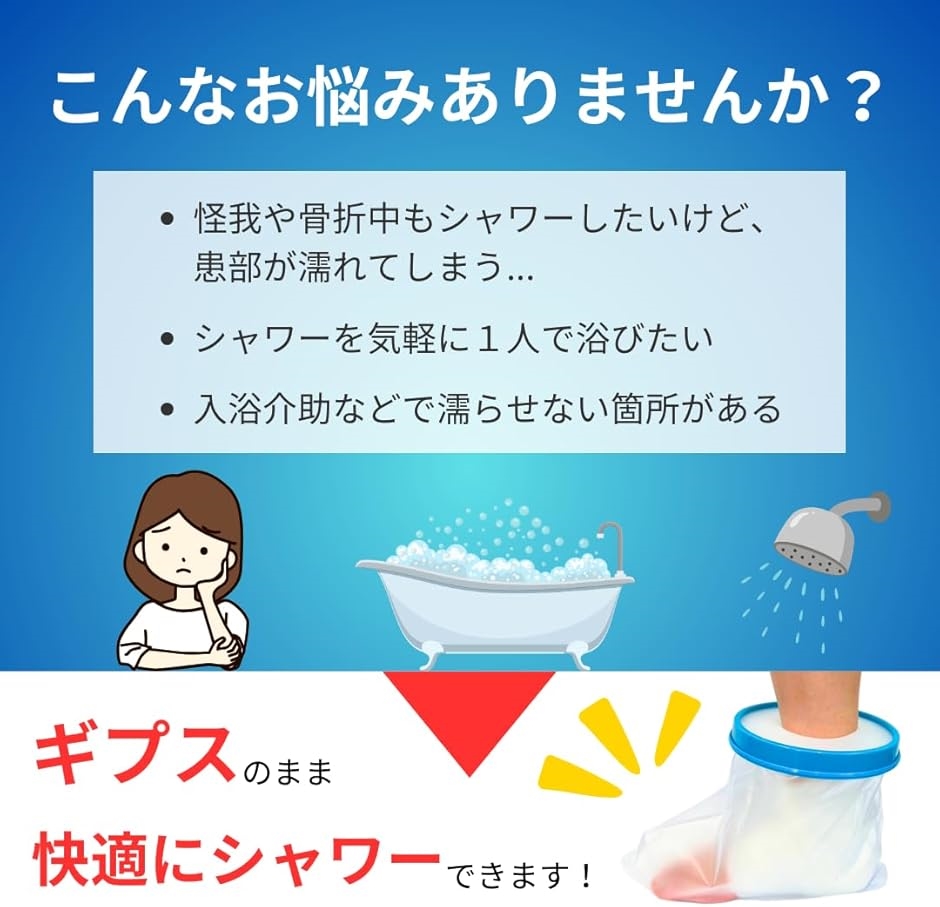 お風呂やシャワーを浴びる際にも、安心してギプス部分を濡らすことなく、快適な入浴をサポートします。