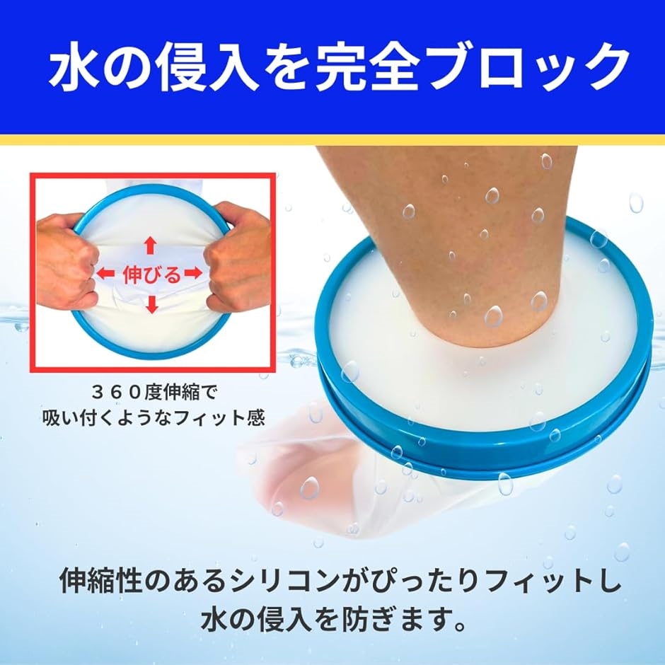 入口が伸縮性に優れたシリコンを使用しており、ギプスをしっかり固定しながらも、肌に優しくフィットします。
