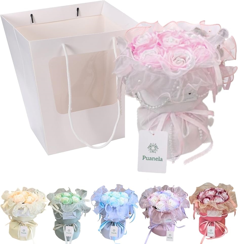 商品名 | フラワーデザイナー推奨 ソープフラワー 花束 ギフト 誕生日 母の日 退職 敬老の日 プレゼント 紙袋付き バラ:モルガナイト |