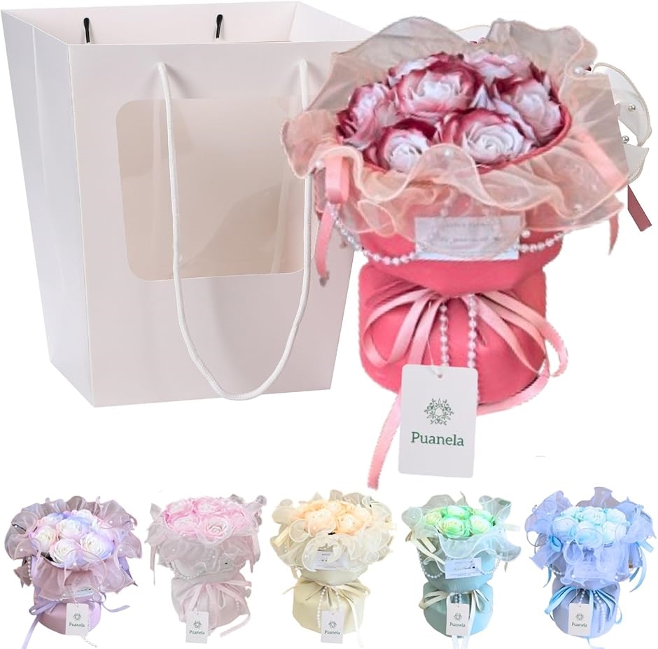 商品名 | フラワーデザイナー推奨 ソープフラワー 花束 ギフト 誕生日 母の日 退職 記念日 敬老の日 プレゼント 紙袋付き バラ:ガーネット |
