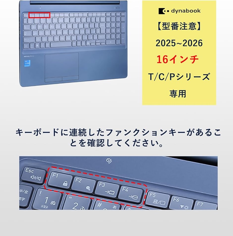 | 商品名 | 2025〜2026発売16 Dynabook キーボードカバー Tシリーズ T5/A T5/Y T6/A T6/Y T7/A T7/Y T9/A T9/Y AZ/MA AZ/MY AZ/LA AZ/LY Cシリーズ C5/A C5/Z C6/A C6/Y C7/A C7/Y CZ/MA CZ/MY PZ/MA PZ/MY Pシリーズ P56/LA P56/LY 用 保護 フィルム 高い透明感 |