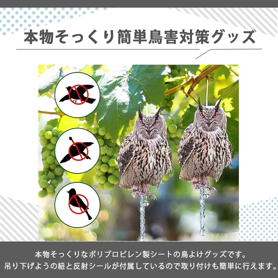 | 商品名 | 鳥よけ フクロウ 鷹 鳥よけグッズ カラス除け ベランダ 置物 フクロウ型鳥よけ 吊り下げ式 カラス撃退 |