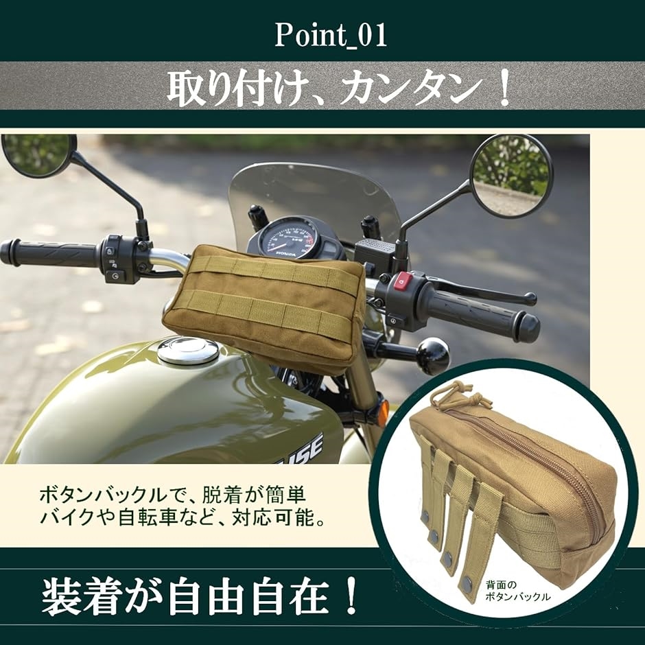 小物をすぐに取り出せるツールポーチやハンドルバーバッグとしても便利です。