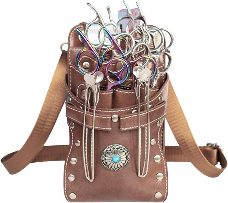 | 商品名 | シザー ケース 7丁 美容師 ハサミ トリマー プロ 仕様 ウエスト バッグ PU レザー コンチョ |