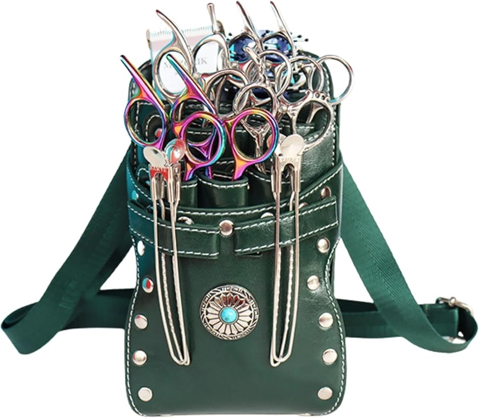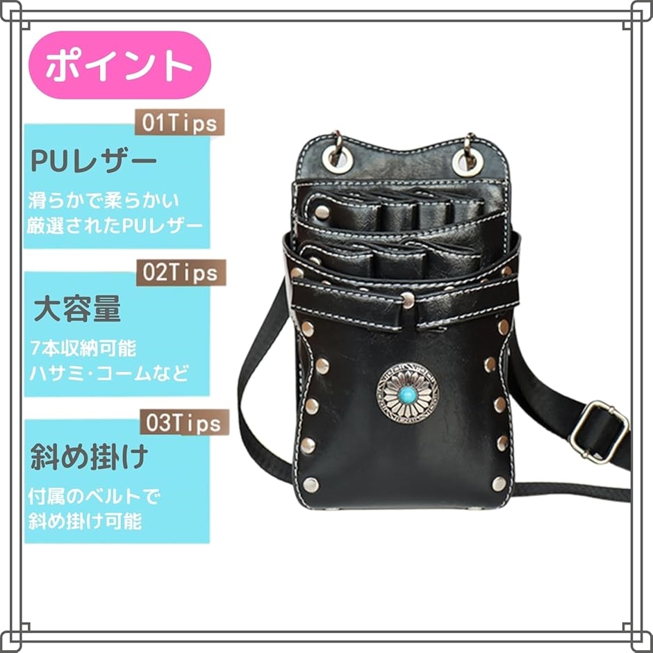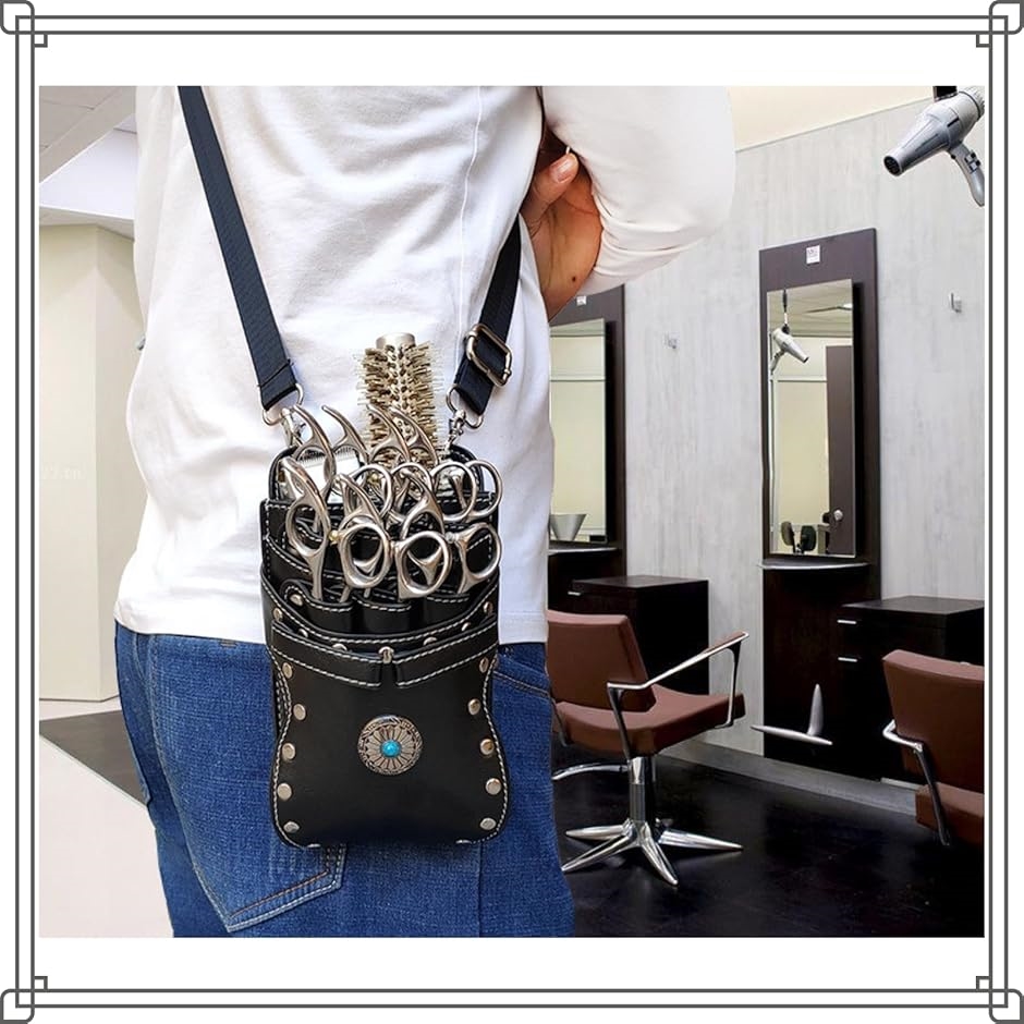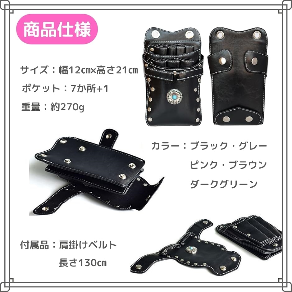 | 商品名 | シザー ケース 7丁 美容師 ハサミ トリマー プロ 仕様 ウエスト バッグ PU レザー コンチョ |