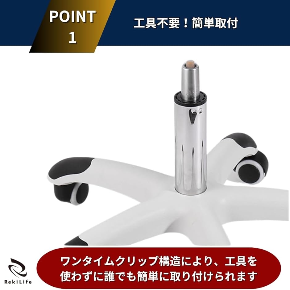 「工具不要。簡単取付」 オフィスチェア、OAチェア、ゲーミングチェアなど、幅広いチェアに対応する汎用タイプの交換用ガスシリンダーです。