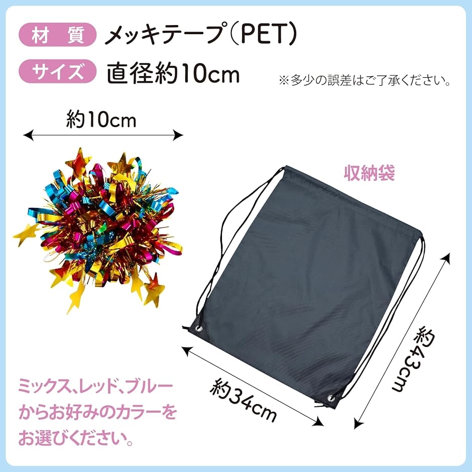 「カラー」 レッド / ブルー / ミックス 「素材」 メッキテープ(PET) 「商品重量」 ポンポン1個約6g 「内容」 ポンポン14個、収納用袋1個