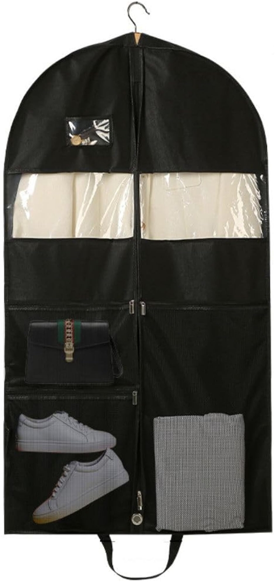 ドレスやスーツだけでなく、靴も一緒に収納できるため、旅行や出張の際に便利です。
