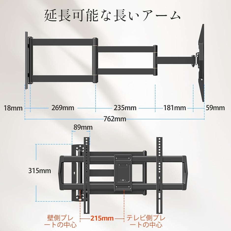 壁から77mm〜762mm、前に出してより見やすく、見ない時はスッキリと収納。