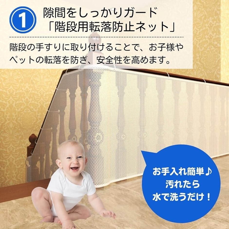 | 商品名 | 落下防止ネット 転落防止ネット 安全ネット 階段 ベランダ 安全対策 ネット 防護ネット 赤ちゃん ベビーゲート 取り付けバンド付き |