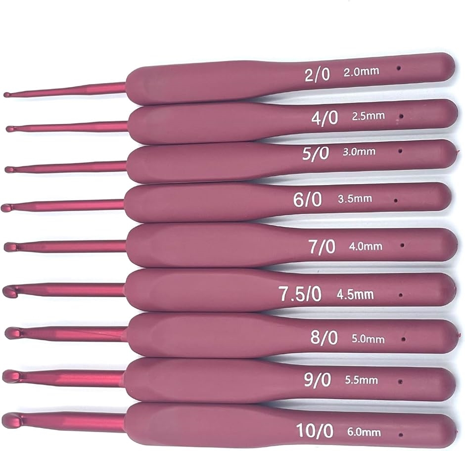 2mmから6mmまでの9サイズセット(2, 2.5, 3, 3.5, 4, 4.5, 5, 5.5, 6)で、手袋やマフラーなど多様な作品に対応可能です。