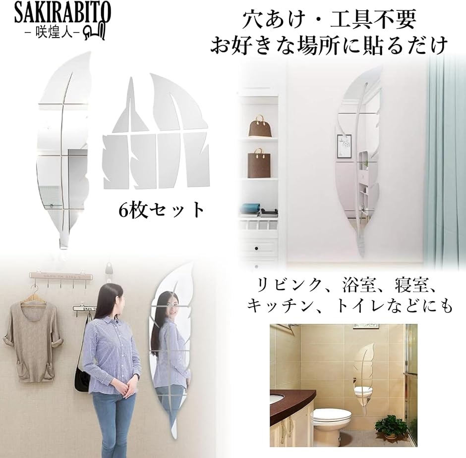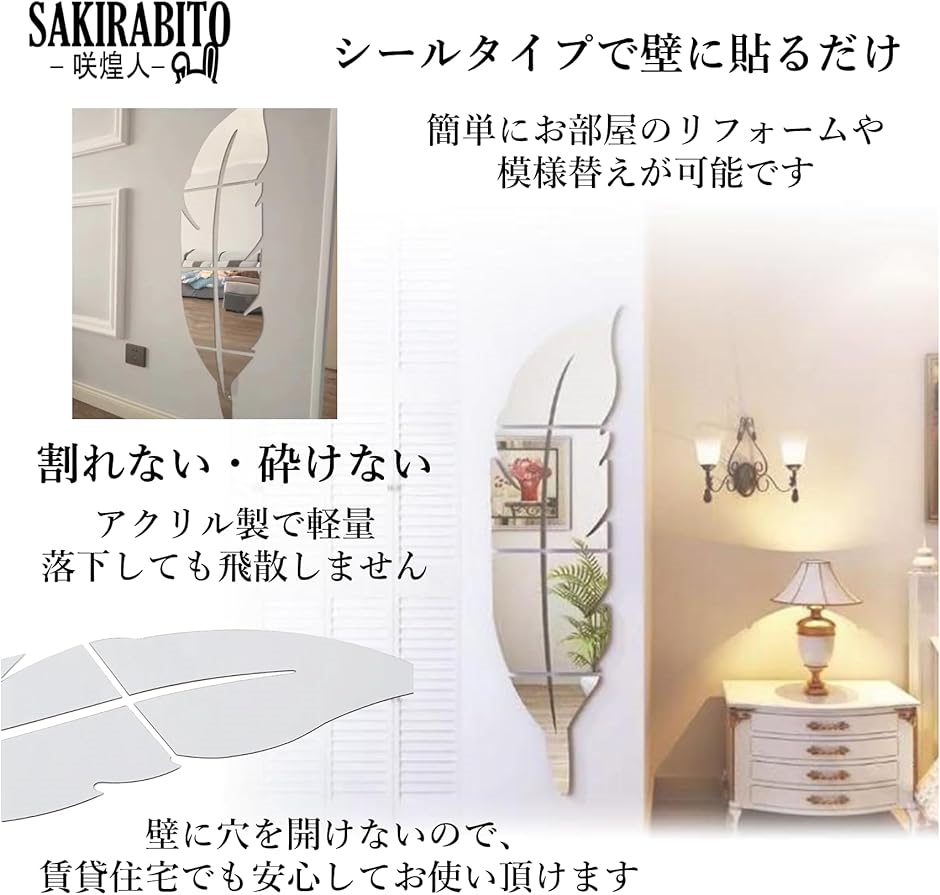 | 商品名 | シールミラー 貼る鏡 全身 姿見 ウォールステッカー 羽根 シルバー アクリル |