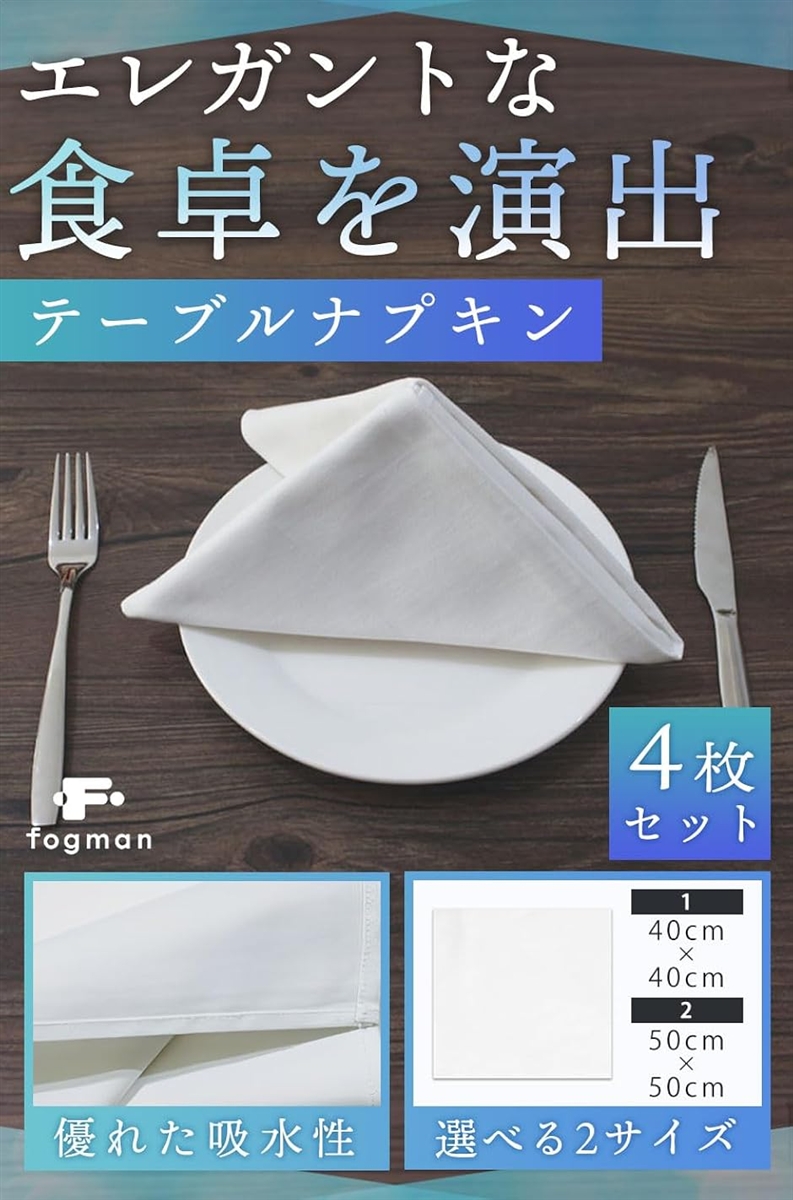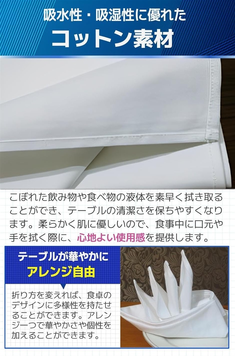 | 商品名 | トーション ナプキン 綿 ペーパー テーブルナプキン 高級 ワイン 白 4枚セット 50x50cm |