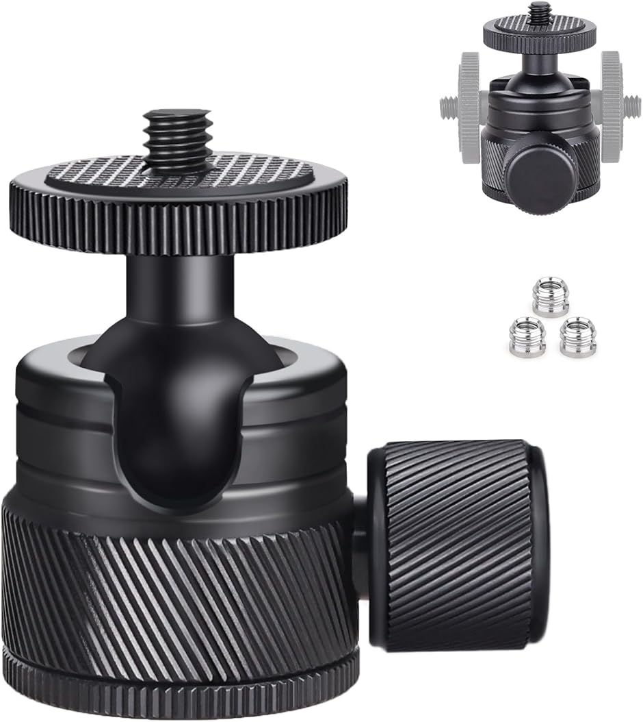 商品名 | 互換品 20mmボール 低重心 雲台 CNC加工 アルミ 360度回転 パノラマ ボールヘッド 3/8-1/4ネジアダプター付き 自由雲台 一眼レフ DSLR ビデオカメラ用 最大耐荷重3キロ |