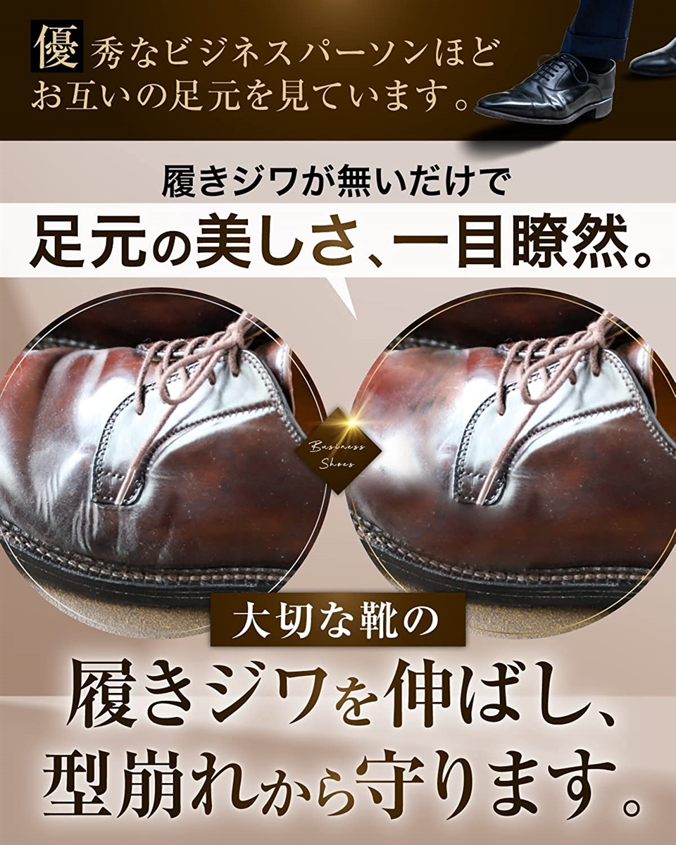 靴に刻まれたシワをしっかり伸ばし、アッパーのつぶれやソール(靴底)の反り返りを戻すことで革靴をはじめとしたシューズの寿命を伸ばすことにつながります。