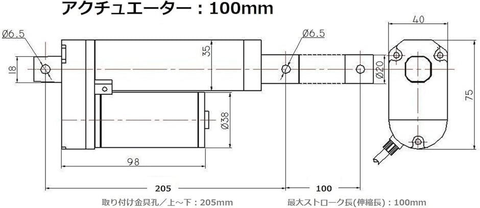 | 商品名 | 電動 シリンダ アクチュエータ 750N 10mm/s DC 12V 農業 産業 リフター 福祉 介護 リフト DIY 100mm |