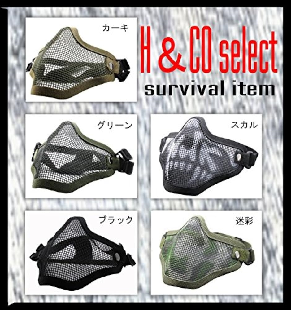 | 商品名 | H&Co.select サバゲー フェイスマスク ハーフメッシュマスク ダブルバンド SGM-010 カーキ |