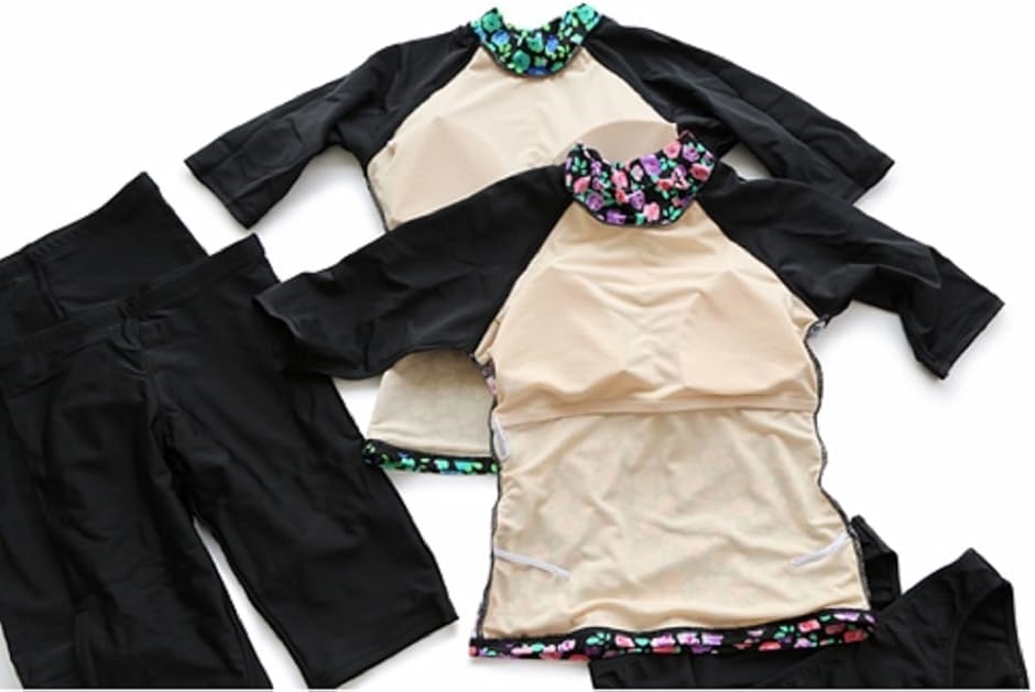 半袖トップスと5分丈ハイウエストパンツ、ビキニパンツで気になる体型もカバーします。