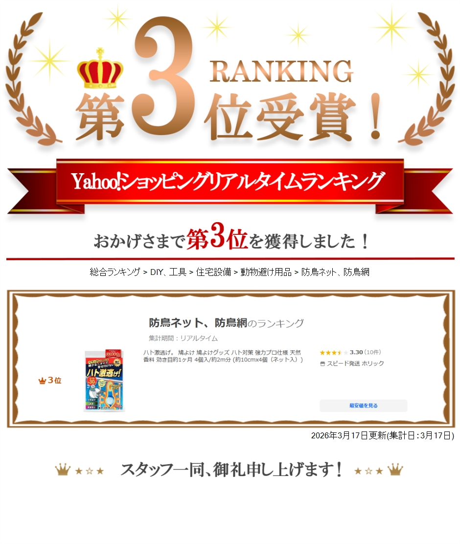 「害獣駆除のプロ推薦・シリーズ累計88,000個突破。」本能レベルで嫌う「ミントの香り」で鳩を撤退。