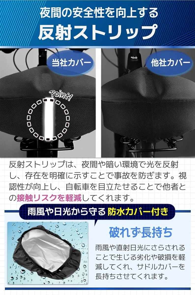 | 商品名 | サドルカバー 自転車 夜光 高反射 肉厚 クッション 衝撃吸収 防水カバー付き |