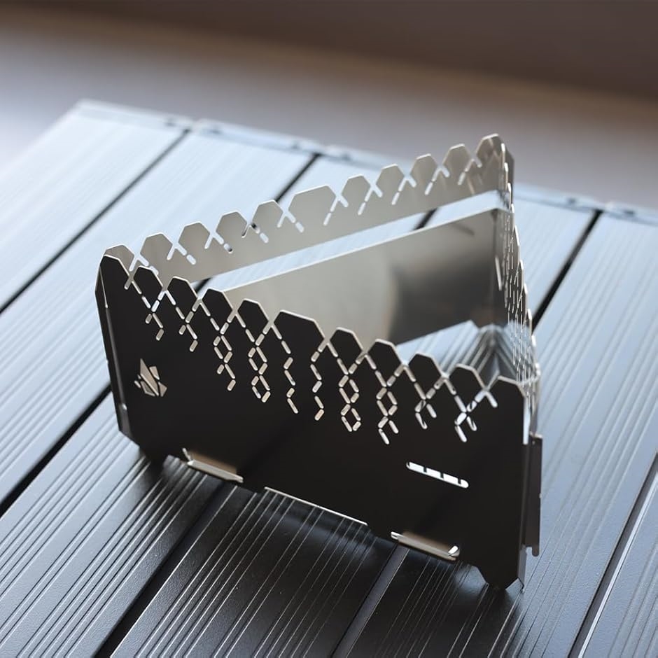 メスティンを乗せるための五徳や、風から火を守る風防の役割を果たしてくれます。