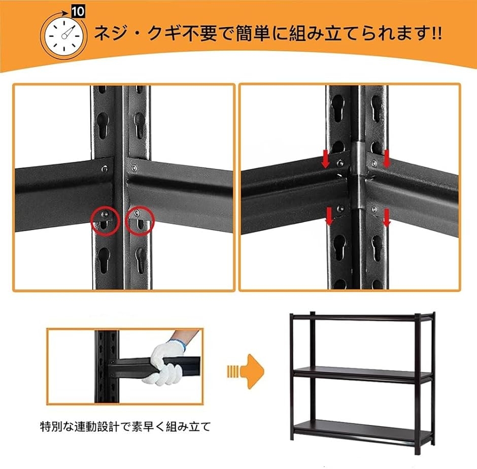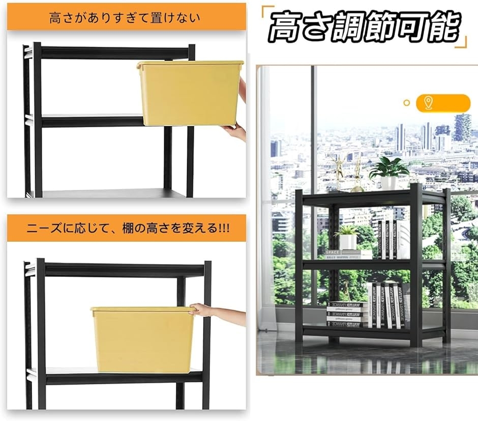 | 商品名 | スチールラック 収納棚 業務用 3段 高耐荷重150kg/段 中型 組立簡単 高さ調整可能 オープンシェルフ キッチン 物置 倉庫 ガレージ |