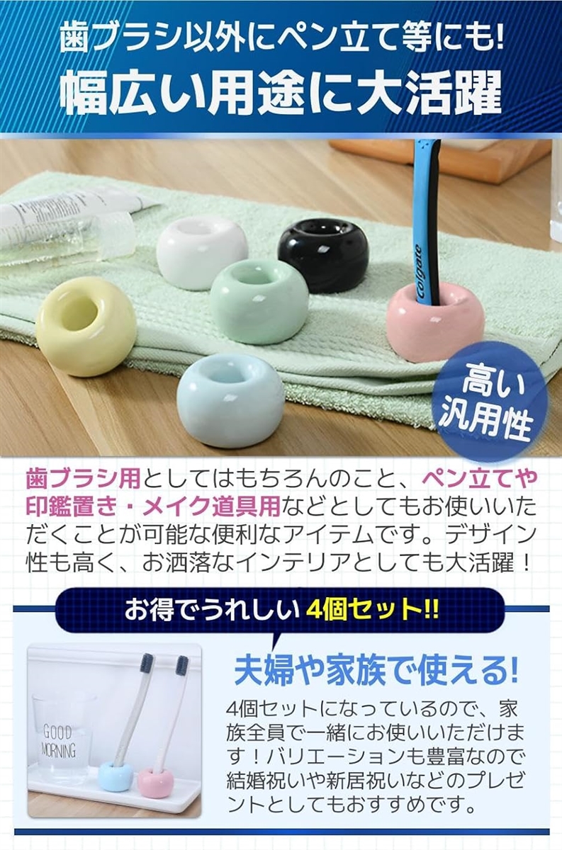 | 商品名 | 歯ブラシスタンド 歯ブラシ立て かわいい おしゃれ 陶器 家族 カップル 4個セット カラフル |