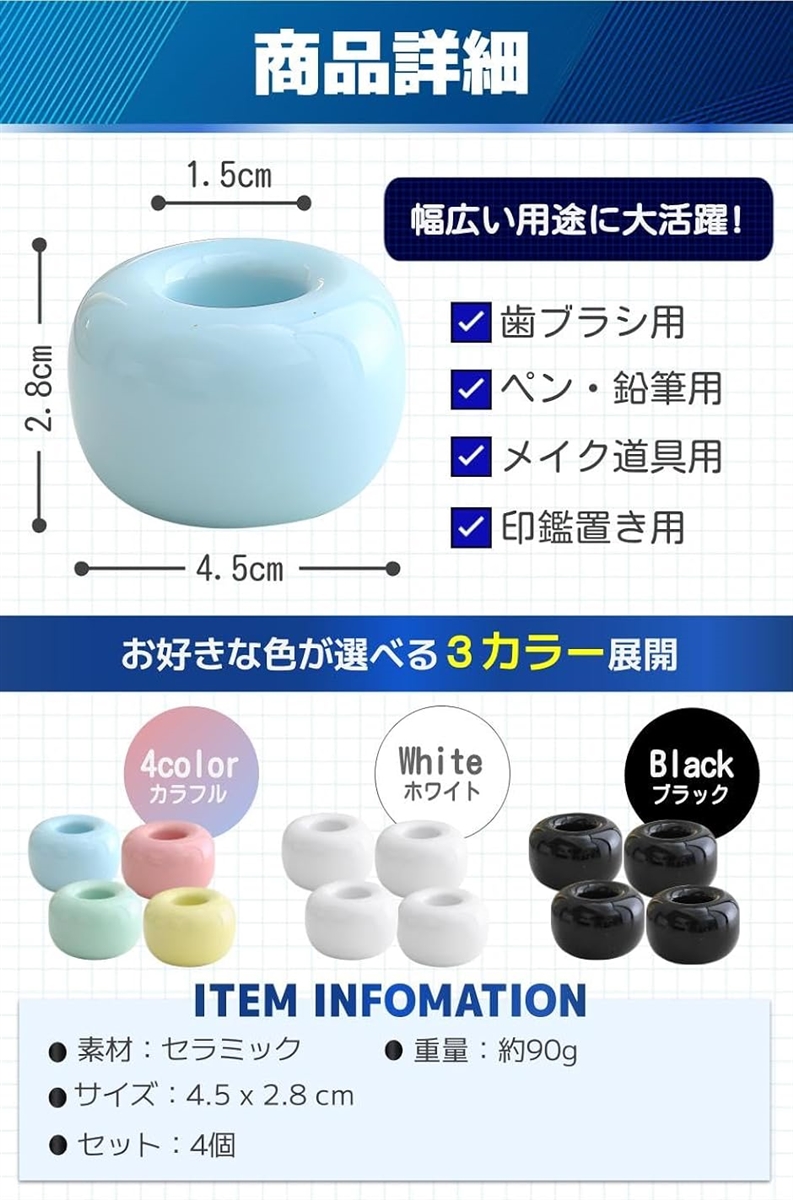 「商品詳細」素材:セラミック重量:約90g/サイズ:4.5 x 2.8 cm/セット:4個/