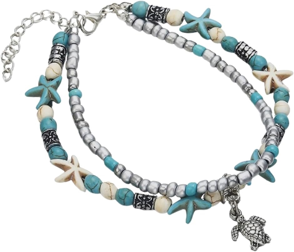 | 商品名 | アンクレット ターコイズブルー 亀 レディース 2連 つけっぱなし 青 白 ターコイズ |