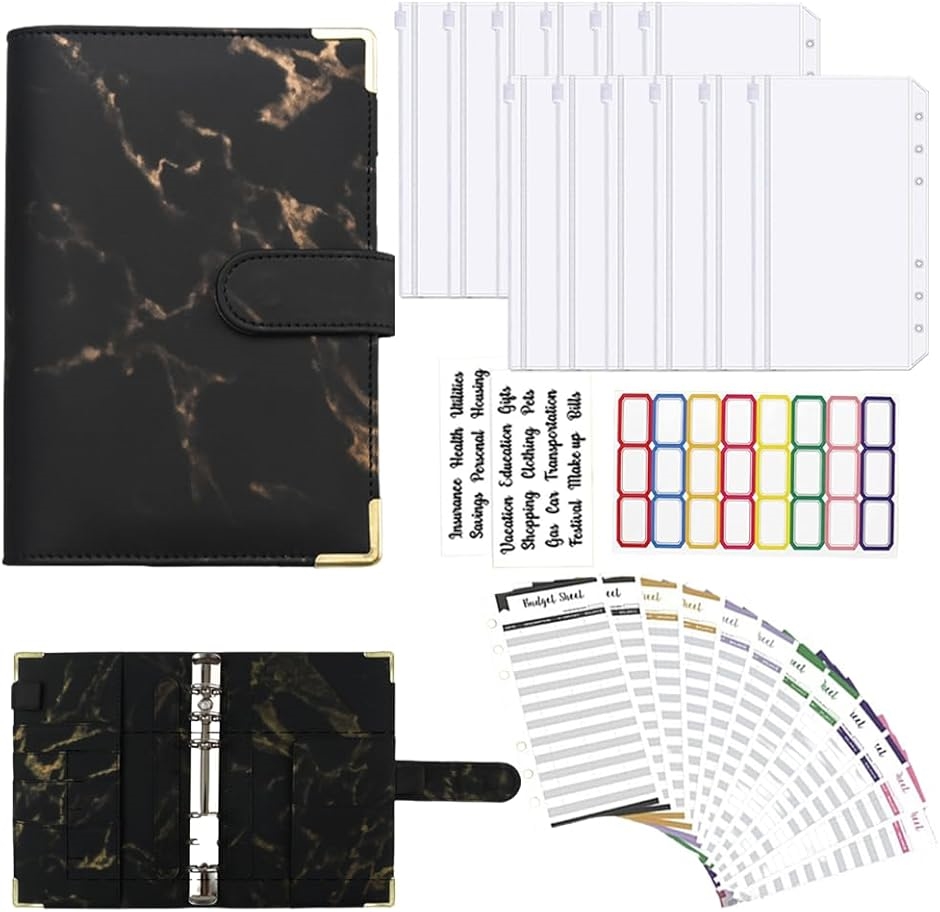 | 商品名 | 家計管理 ポーチ お金管理 ファイル 6穴 家計簿 袋分け 予算管理 バインダー A6 ブラック |