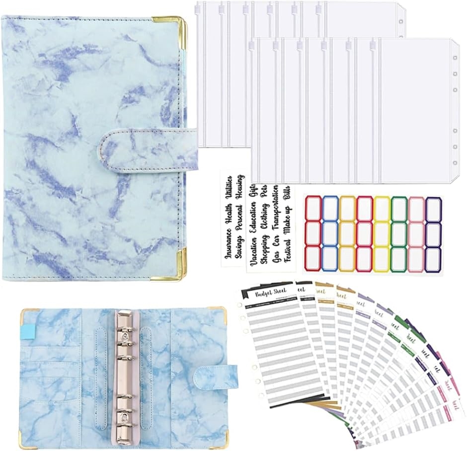 セット内容:ファスナー付きPVC素材のファイル:12枚、予算管理用紙:12枚、英字ステッカー:2枚、カラーシール:1枚の大容量予算バインダー