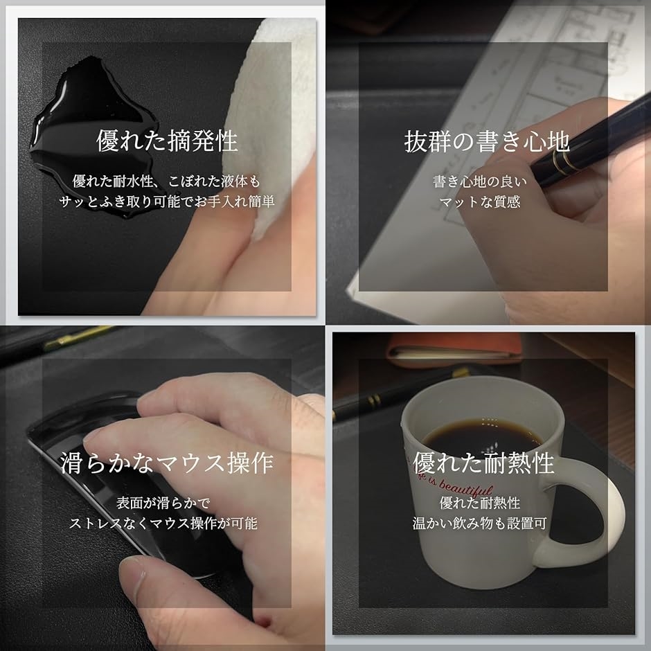 デスクを美しく守る:デスクを傷から保護、温かい飲み物も設置可能な耐熱性、こぼれた水もサッと拭き取れる摘発性があります。