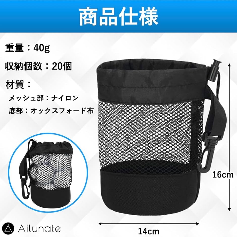 「丈夫な素材を使用」耐久性の高いオックスフォード生地とナイロンメッシュネット素材でできており、重みのあるゴルフボールをしっかり収納できます。