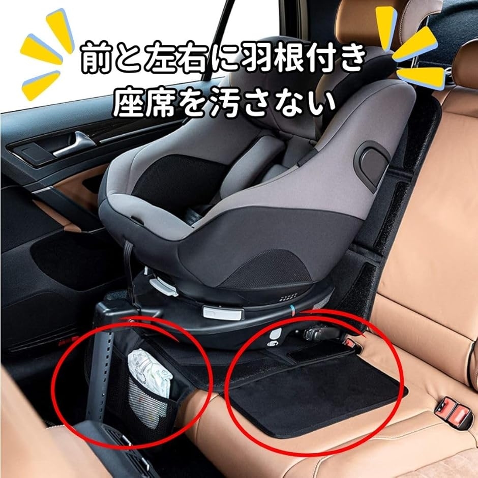 「シートが汚れない」極厚シートカバーは厚みのあるクッションに加え、前と左右に羽根が付いています。