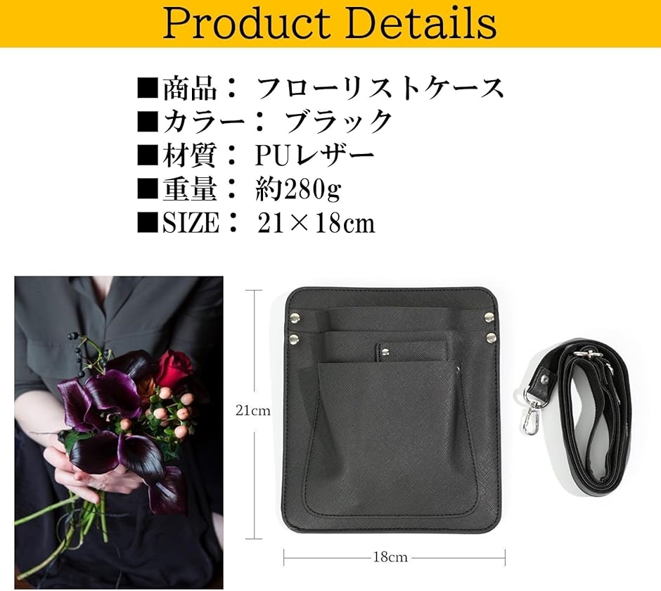 このフローリストケースは耐久性に優れたPUレザー製です。