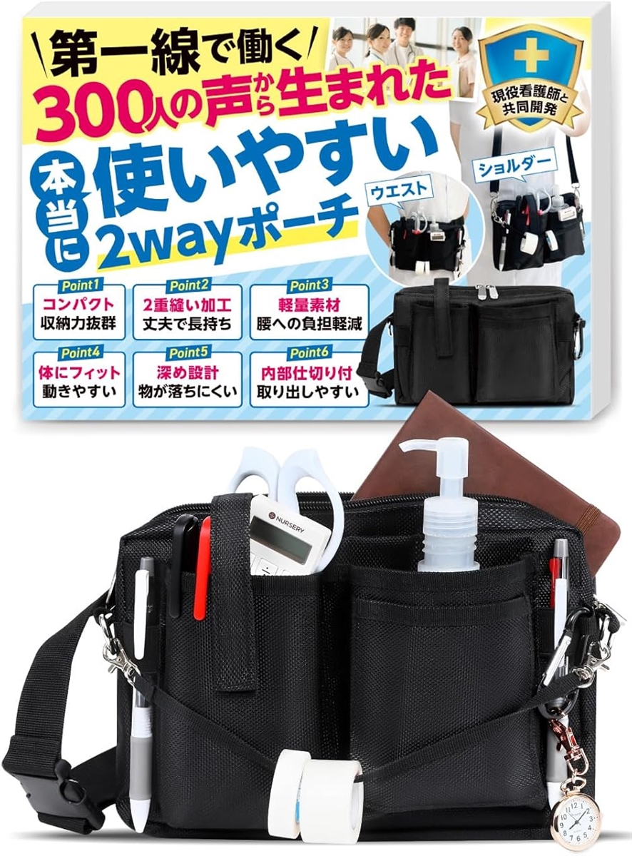 | 商品名 | ナースポーチ 現役看護師と共同開発ウエストポーチ 看護師ポーチ 仕事用 2WAY仕様 軽量 男女兼用 |