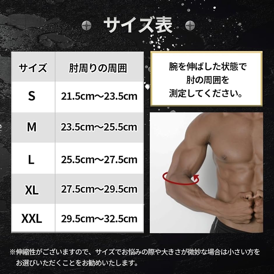 | 商品名 | エルボースリーブ 左右セット 肘サポーター 筋トレ ベンチプレス ウエイトトレーニング 圧迫 スポーツ全般 厚み 7mm サイズXXL |