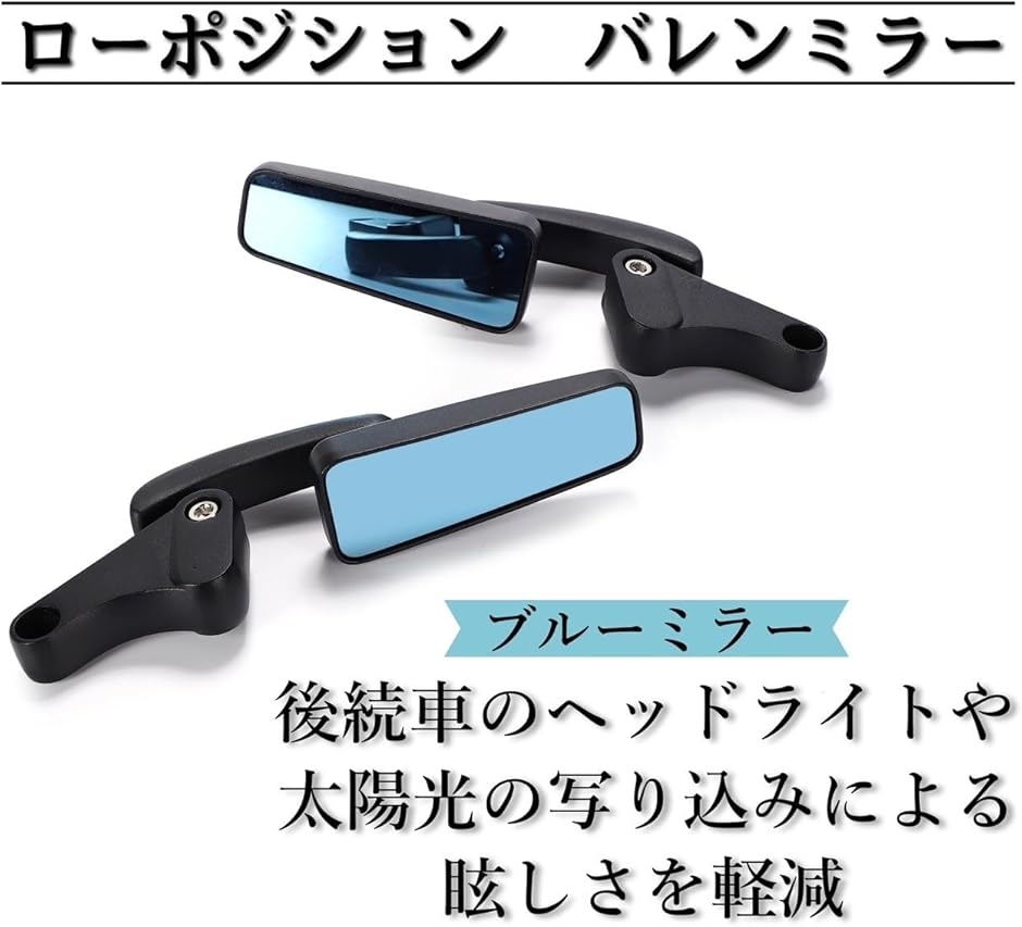 | 商品名 | 互換品ローポジション バレンミラー ブルーミラー スクエア型 アルミ削り出し シグナス マジェスティ マグザム ステルス シグナスX ローフォルム バイクパーツ サイドバックミラー 左右セット |
