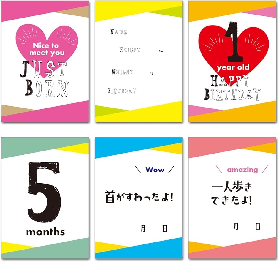 記念日カードは、「JUST BORN」「名前・誕生日・身長・体重」「HALF BIRTHDAY」「100DAYS」「1st Birthday」「2nd Birthday」「3rd Birthday」の7種類。