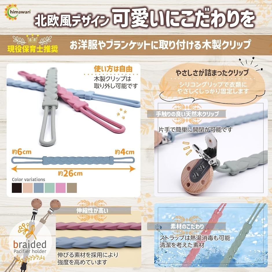 | 商品名 | おしゃぶりホルダー 赤ちゃん おもちゃホルダー おもちゃストラップ 落下防止 シリコン素材 |
