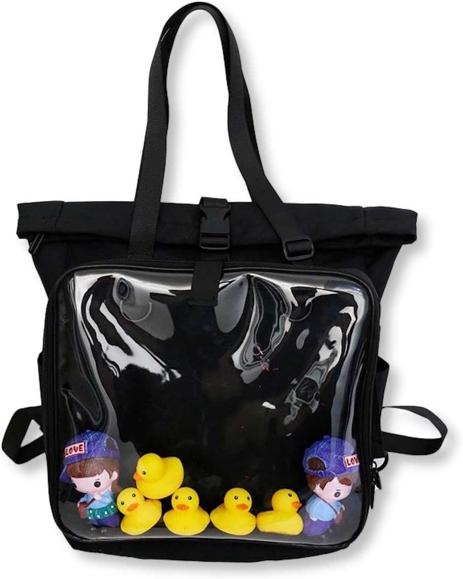 自在にアレンジ : 前面の透明ポケットは、ダブルファスナーで広く開閉でき、デコレーションが簡単です。好きな推しの写真、ぬいぐるみ、缶バッジなどを入れて、自分の趣味に合わせてアレンジできます。