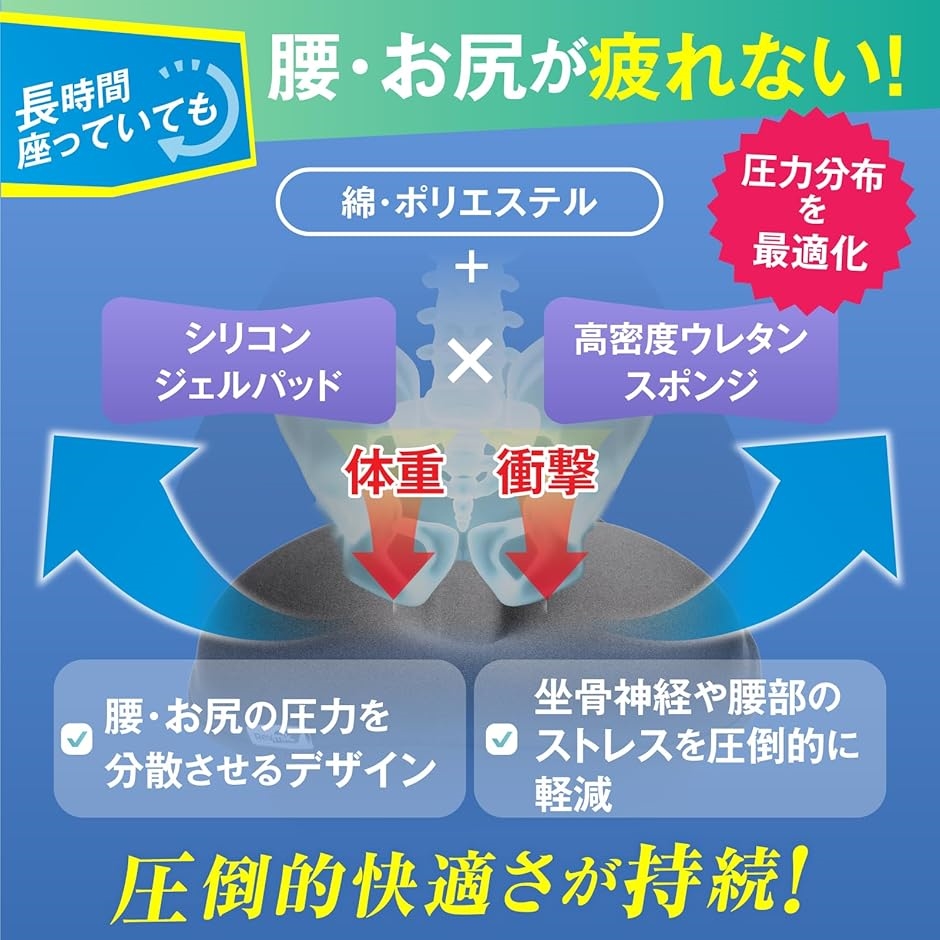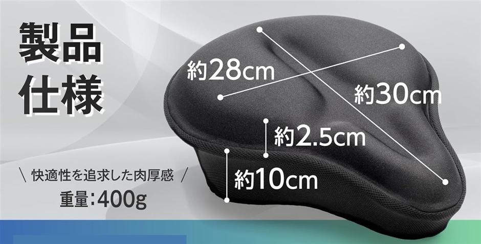 クロスバイクやエアロバイクに最適な厚めのクッションで、お尻にかかる衝撃をしっかり吸収。
