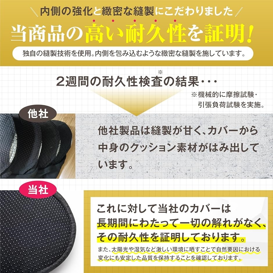 「滑り止め加工でカバーがズレない」激しい加速や急ブレーキを行っても、シートカバーが安定して座り心地を損なうことはありません。