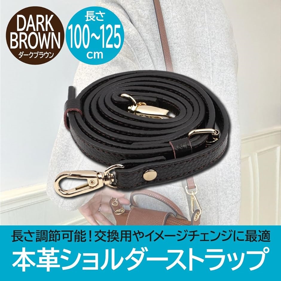| 商品名 | 本革ショルダーバッグ用ストラップ 調節可能 牛革製 ベルト幅1.2cm 長さ100cm〜125cm ダークブラウン |