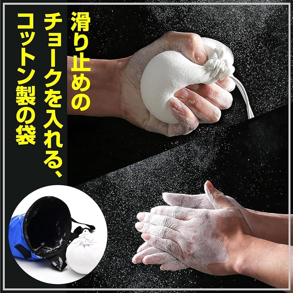 このコットン製の袋に入れてチョークボールを作り、クライミングバッグに入れてご使用ください。
