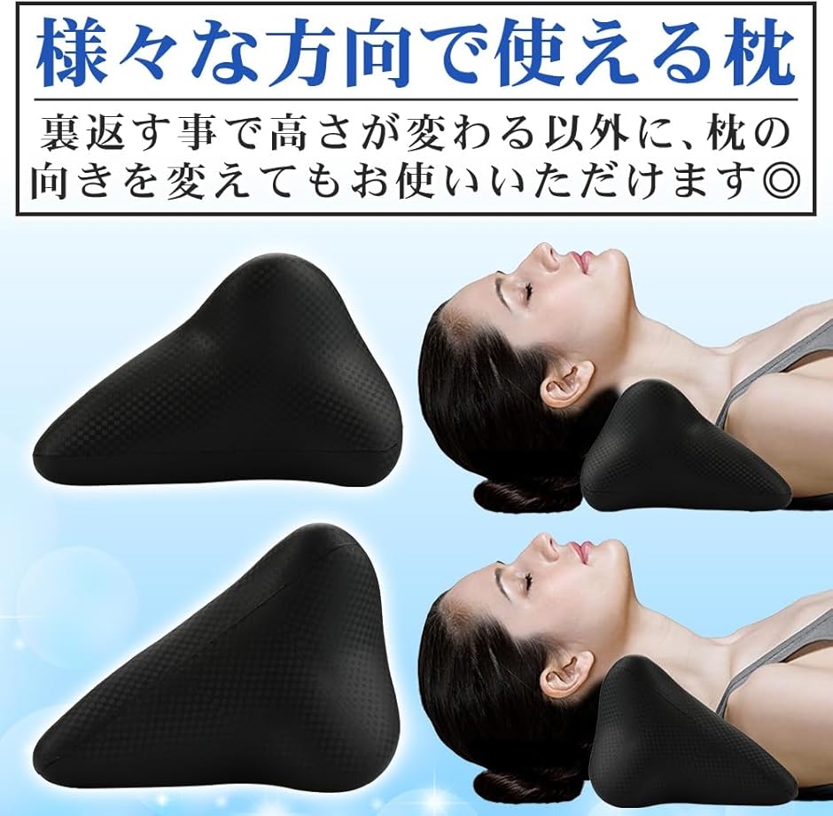 枕上部のV字になった部分は首を固定し、自然な圧力で首をストレッチさせることができるアイテムです。
