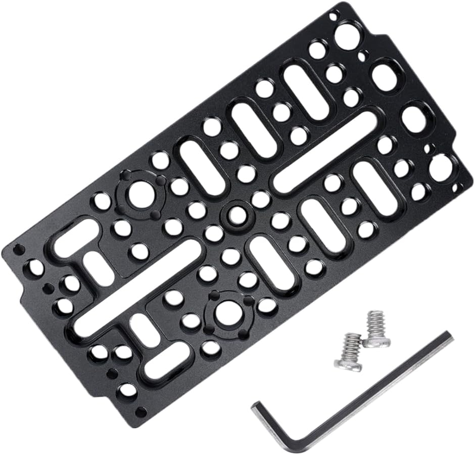 「拡張性が大きい」本チーズプレートは多用途クイックリリースプレートとし、複数の1/4“-20と3/8”-16ネジ穴付き、マジックアーム、ロッド、バッテリ―等カメラアクセサリーが取付けられる。