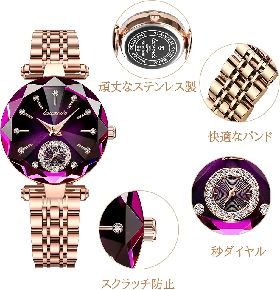 「ラグジュアリー感あふれるデザイン」:スクラッチ防止ガラスと頑丈なステンレス素材を採用し、腕時計が変形や色落ちしにくい。
