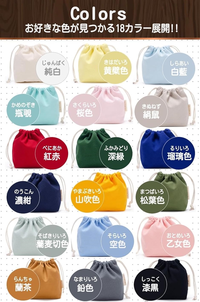 18色の和風カラーバリエーションと厚みのあるキャンバス地(帆布)がお洒落かわいいポイントです。