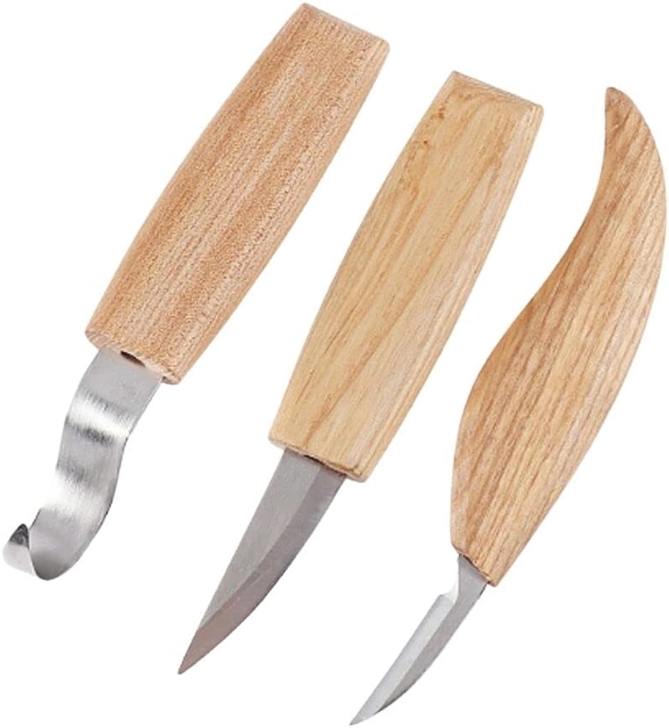 3つの異なるタイプのナイフが含まれていますので、スプーン、ククサ、ボウル、カップ、スコップなどさまざまな形状やデザインの彫刻を行う際にも便利なキットとなっています。